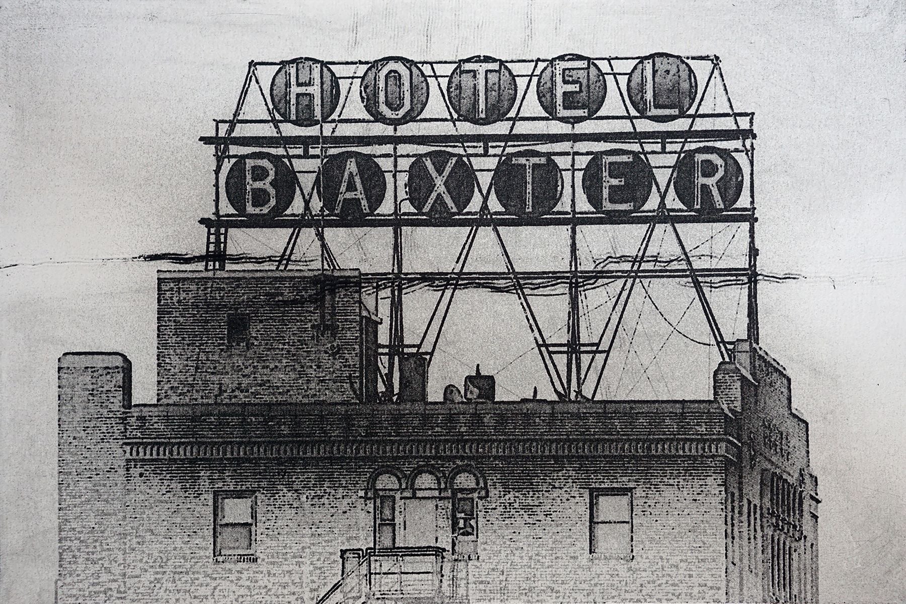 Celebrate vintage signage and downtown Bozeman nostalgia with this spirited intaglio print featuring the iconic Hotel Baxter sign. Part of Larry Poole's "Your Town-My Town" collection, this piece captures the personality and history of beloved local landmarks with artistic charm.