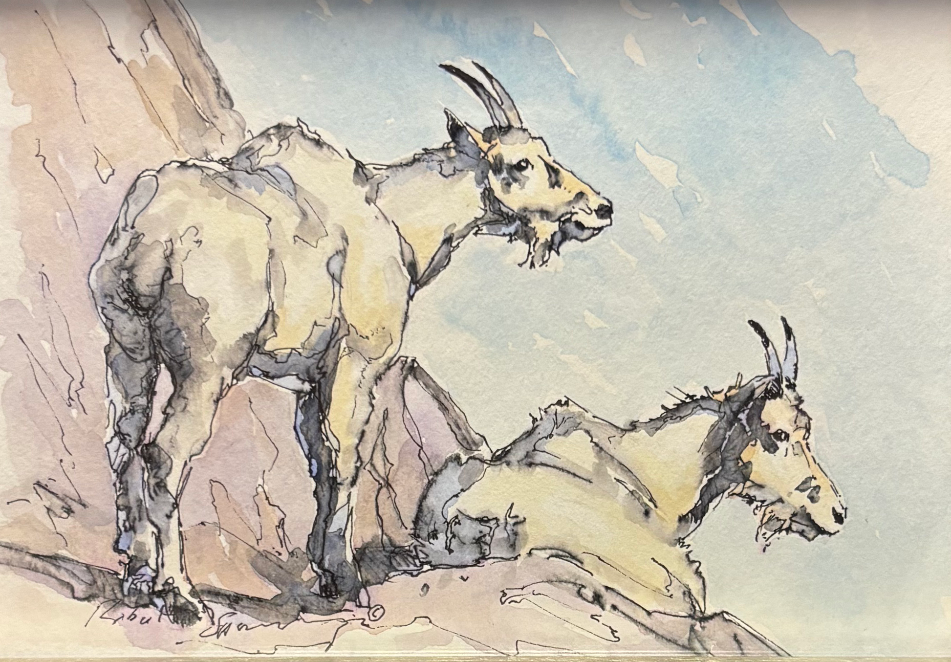 Original 11" x 13" Framed Ink Wash Painting