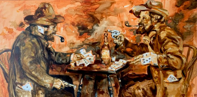 Indulge in the exclusive "Redhanded" by Hannah Uhde. This original oil painting captures the wild west with its western motifs of poker, gambling, and cowboys. With a touch of rustic charm, this masterpiece is sure to add sophistication to any room.
