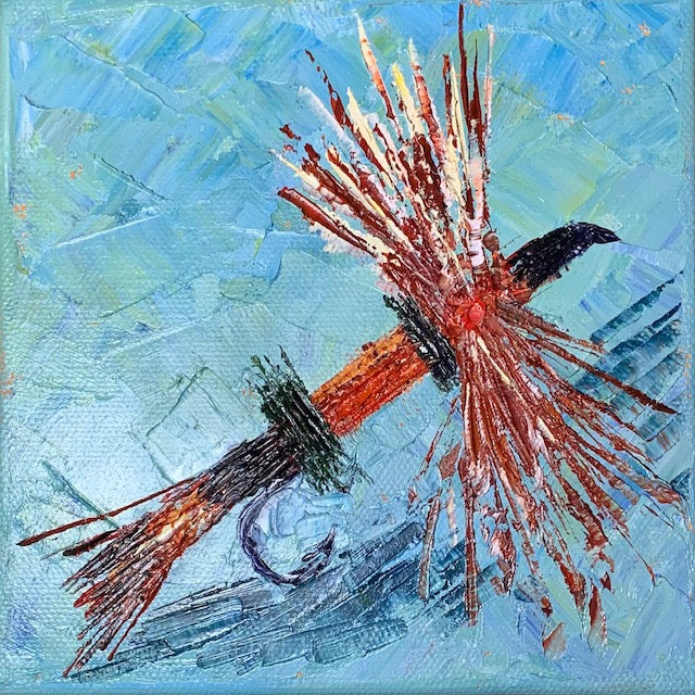 Part of the miniature 6" x 6" fly fishing lure collection by Susan Moncada